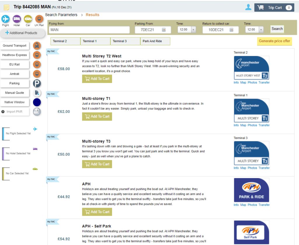 You have booked the flight, you have booked your hotel, a chauffer transfer to the airport is not for you and you are taking the car. Your car will need some where to stay. Why not add car parking to your trip, an agent can assist but it couldn’t be any easier to book on line. All major operators are included in your search so you can easily compare and select the one that works best for you. Simply add to your trip cart and check out. Parking is pre-paid and one less thing to worry about.